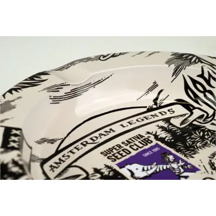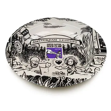 Este prático cinzeiro Super Sativa Seed Club tem um diâmetro de 14 cm e é um deleite útil para qualquer apreciador de cannabis. O cinzeiro é impresso com o icônico logotipo da Super Sativa ‘Amsterdam Legends’ e é feito de metal resistente ao calor com ranhuras para apoiar o seu beck. Com preço acessível e design requintado, este Cinzeiro Super Sativa Seed Club ajudará a manter sua área de fumar limpa e arrumada!