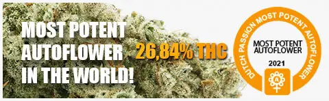 - Uma autoflower rica em THC com uma porcentagem de THC extremamente alta em média entre 20-25%!