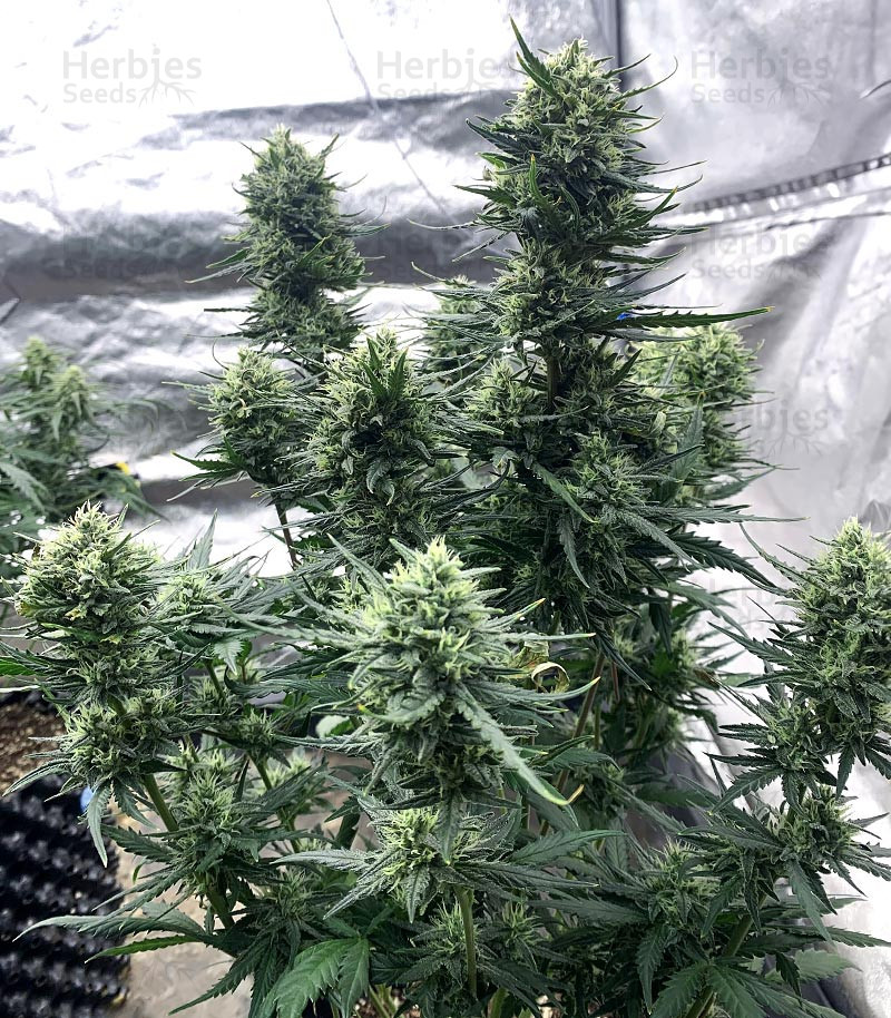 Planta de altura média, flores densas e produtivas. O ciclo de floração indoor é de aproximadamente 9 semanas, enquanto ao ar livre a colheita ocorre em outubro, oferecendo rendimento elevado e consistente.